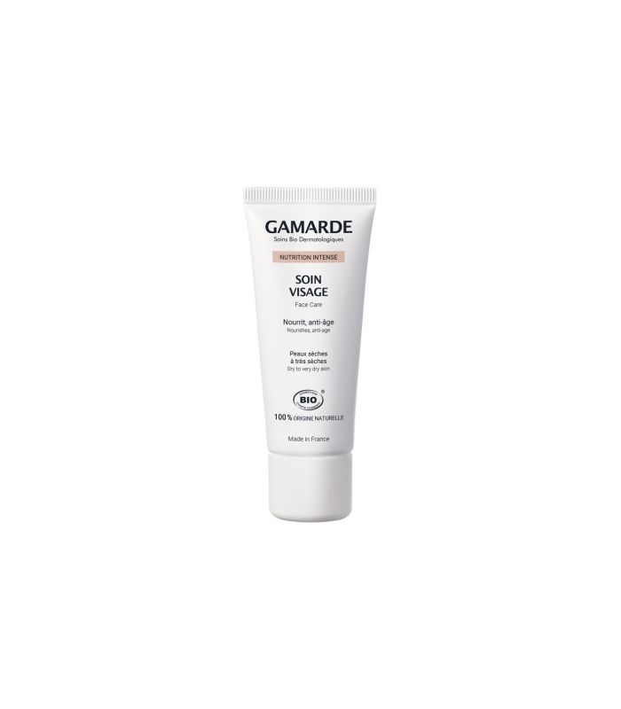 Gamarde Nutrition Intense Soin Visage Bio 40 ml est un soin anti-âge qui nourrit les peaux sèches à très sèches. A base d'huile d'Argan Bio nutritive, réparatrice, anti-âge et de beurre de Karité, elle apaise les tiraillements tout en renforçant le film hydrolipidique de la peau. Sa formule onctueuse protège des agressions extérieures. Les démangeaisons et rougeurs liées à la sécheresse cutanée disparaissent, même par grand froid. Le visage retrouve une sensation de confort immédiat et un toucher velouté.