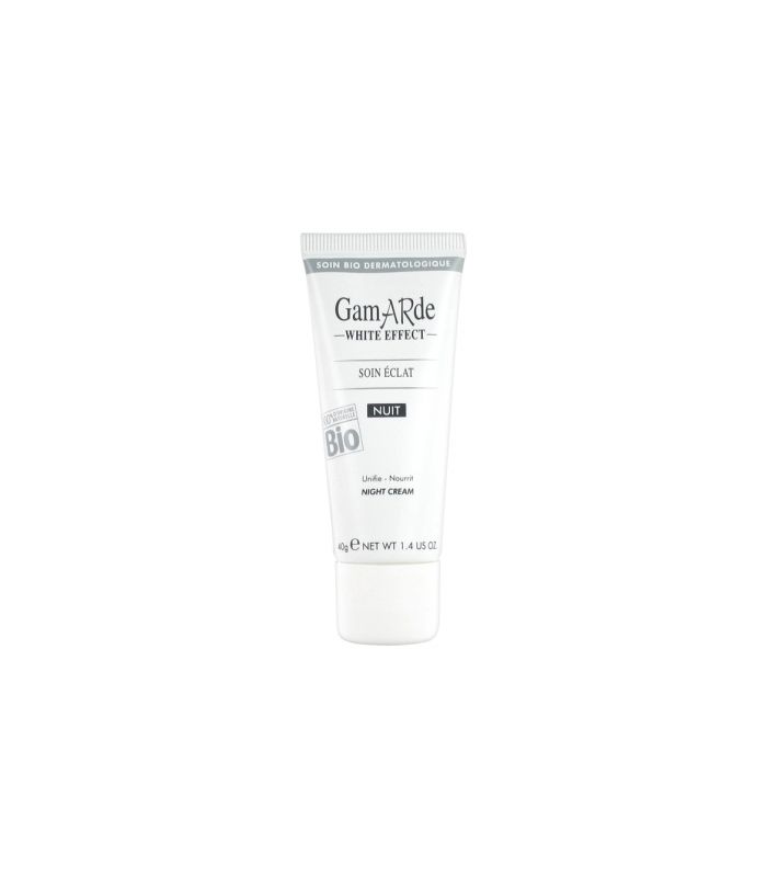Gamarde White Effect Soin Eclat Nuit Bio 40 g est un soin qui uniformise le teint et nourrit les peaux ternes. Son complexe GWE éclaircissant d'origine végétale cible les imperfections pigmentaires.